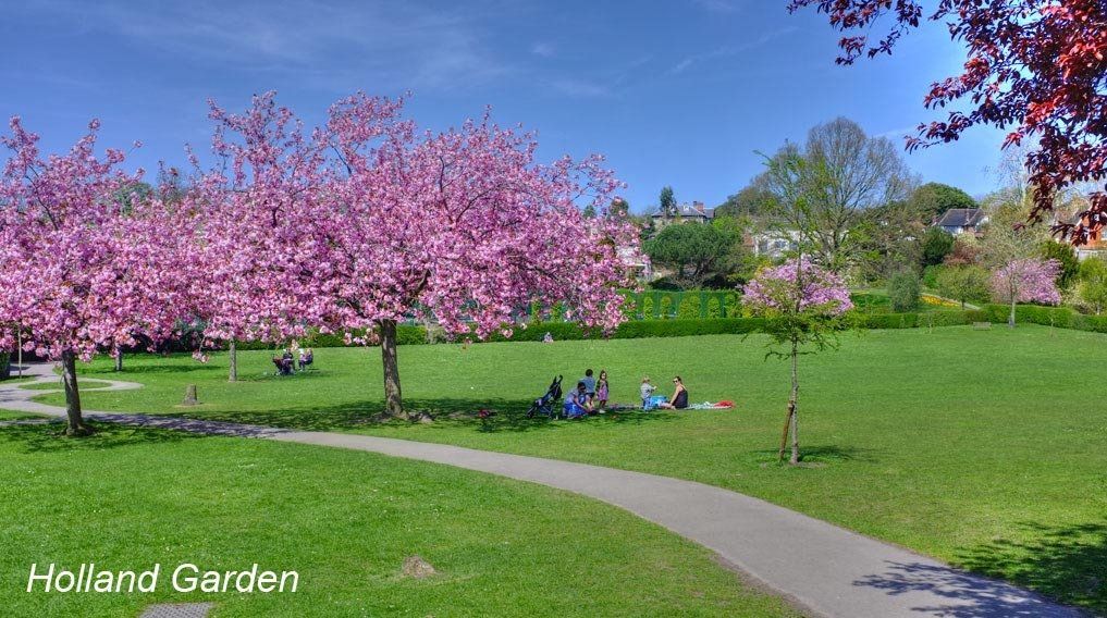 Holland Garden was given to the council in 1928 by Lady Holland in memory of her husband. The garden comprises a large green area, lovely borders and paths, together with two tennis courts.